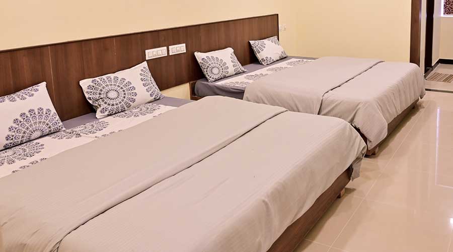 The 11 luxury rooms are well-appointed with three-star facilities. The elegant rooms for the bride and the groom are provided adjacent to the stage in the ground floor. The 9 luxury rooms with modern amenities are provided in the First Floor. The rooms are furnished with air condition, 2 double cots, television, dressing area, cupboards, water heater and intercom facilities.
